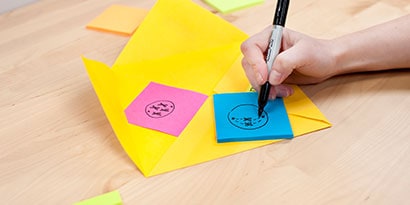 Usa notas Post-it® Súper Sticky para crear las capas e incluir la información necesaria en tu plegable. Por ejemplo, dibujamos en la primera capa cada fase de la mitosis y debajo de esta escribimos en que consiste.